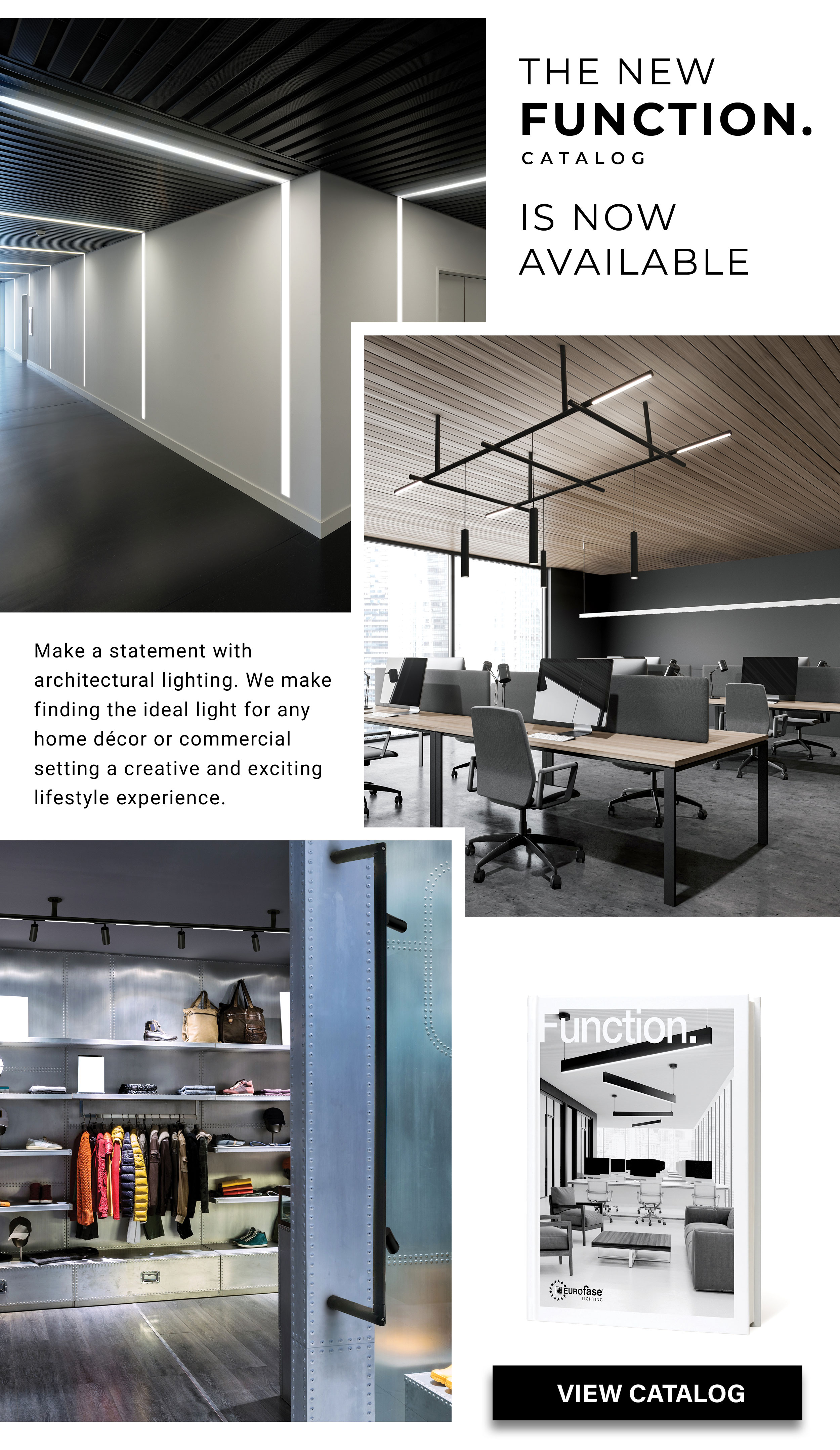 The new Eurofase Function Catalog is now available! It encompasses architectural lighting fixtures across all categories such as modular systems, circuit board extrusions, mini profiles, recessed multiples, and many more!, Browse the online catalog now or download here. For orders or inquiries, please contact us at sales@eurofase.com.